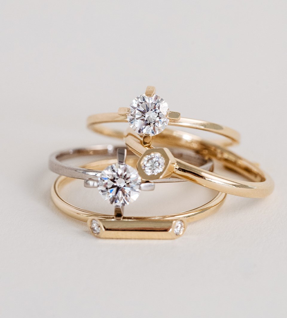 Recycled 18k gold with a 0.1cts lab-grown diamond, G colour, VS1 clarity.