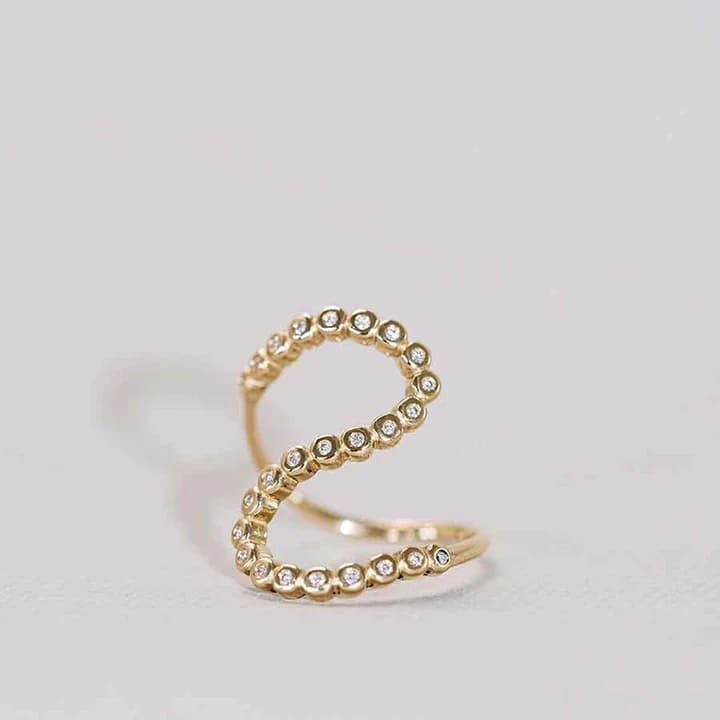 The beautiful Waves ring from the Memories of the Sea collection is made of German recycled 18k gold and set with 25 synthetic Eco diamonds from Switzerland. It is the epitome of longing: The sound of the waves. How they break again and again and roll, spray crowned towards the beach. A movement that, in its strange monotony, harbors its own very special beauty. Feel the sound of the sea, choose Maren Jewellery's Waves Ring!