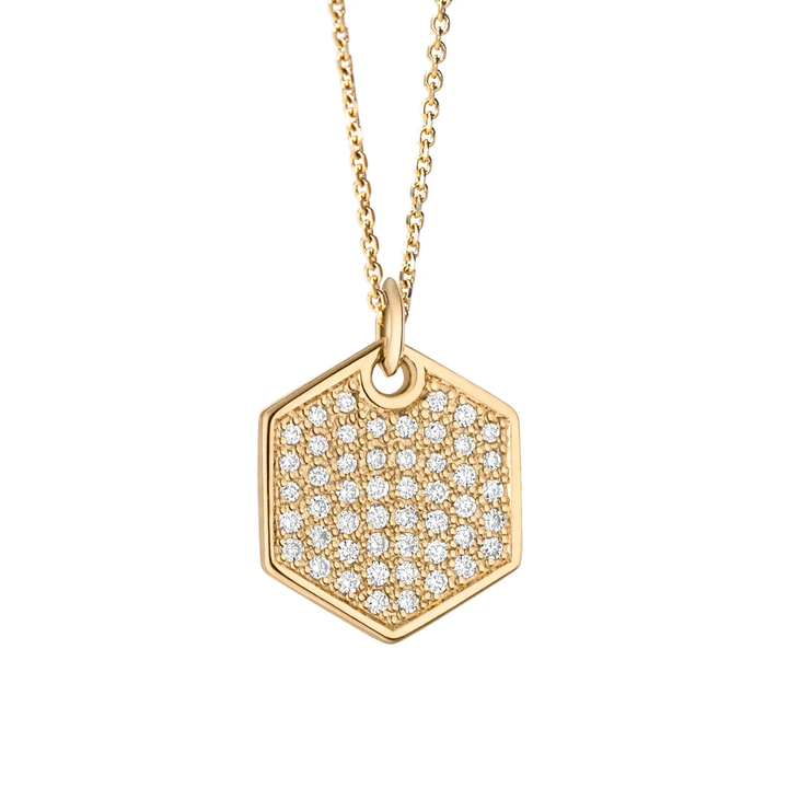 Recycled 18k gold with 50 lab-grown diamonds, 0.2cts total, excellent cut, G color, VS1 clarity.Dimensions: Chain length 42 cm / width 1.3 mm. Pendant length 16 mm (incl. eyelet) / width 12 mm / height 1.7 mm