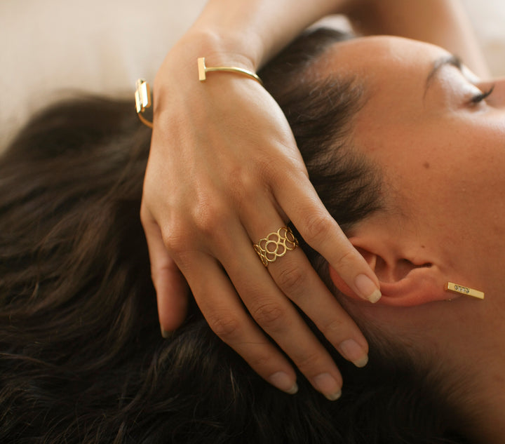 Designed with the modern woman in mind, this piece from the City Collection is inspired directly from the iconic city of Barcelona. This elegant ring presents the historic design of the Barcelona flower from the city's street pavément tiles, famously known as Panots. Capturing a timeless elegance yet made to fit a fast-paced lifestyle, this is the perfect everyday luxury functioning effortlessly from day to night.