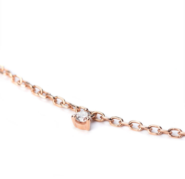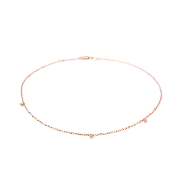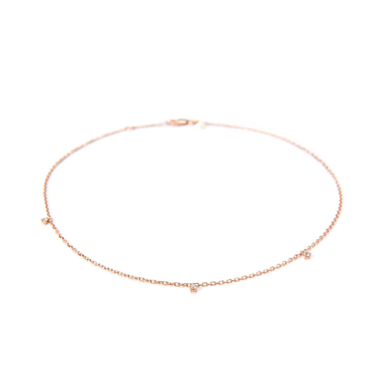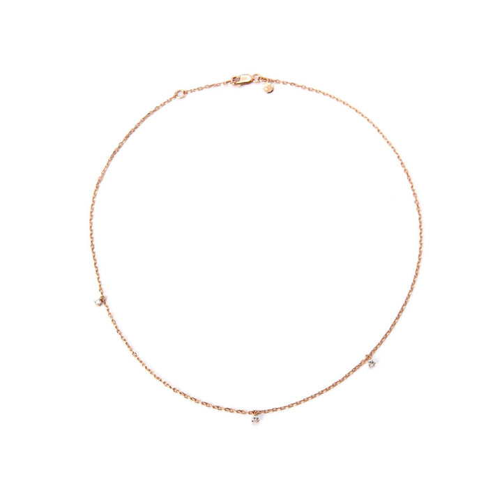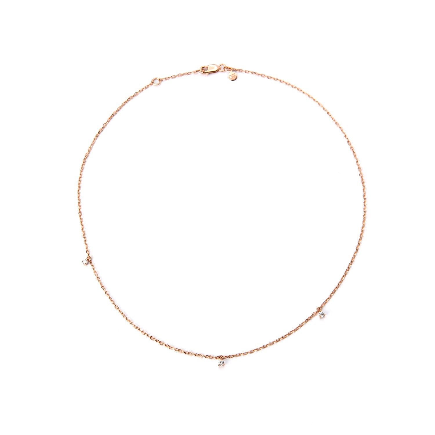 Made in rose gold plated sterling silver with 3 asymmetric diamond pendant charms, each with a diameter of 2.4 mm.Dimensions: 40-42 cm circumference.
