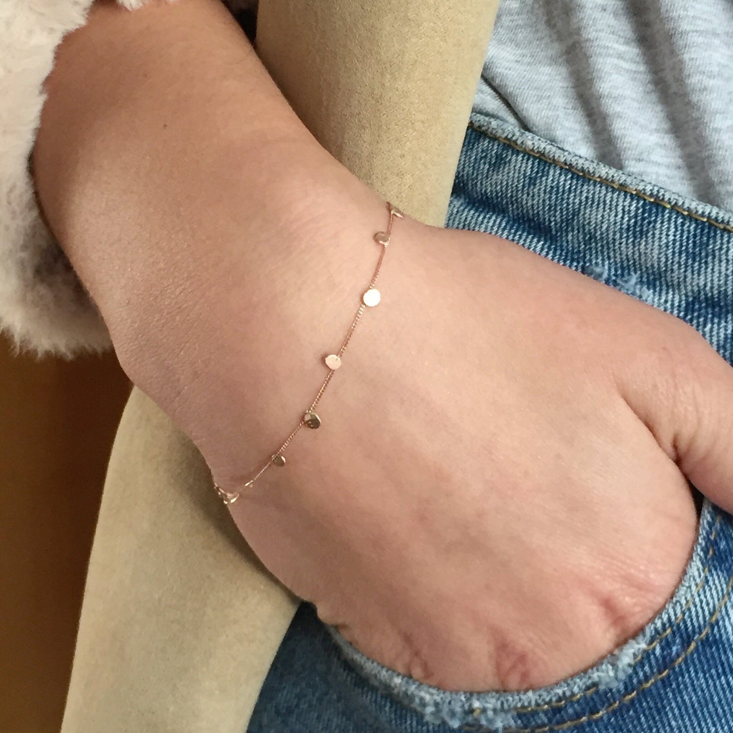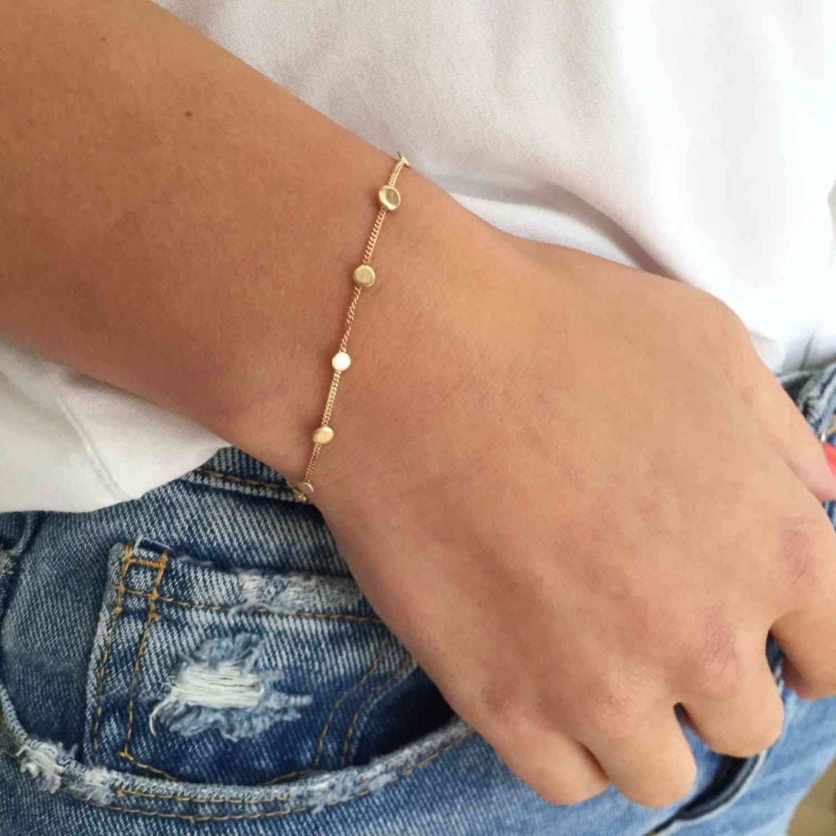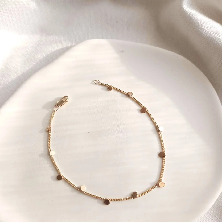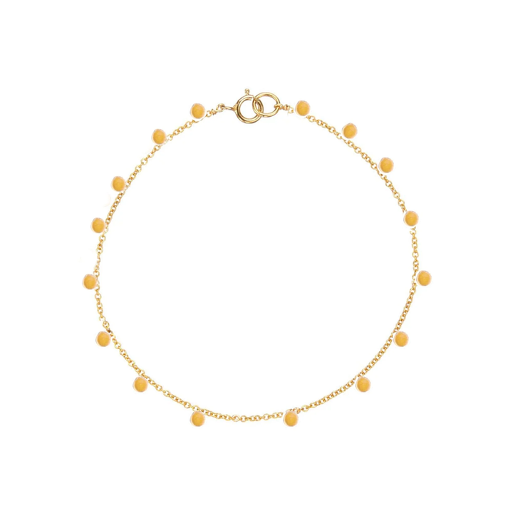 The Scattered Stars Bracelet makes a modern, feminine statement despite its understated size. Gold dots are arranged along a delicate yellow gold chain for a cool, contemporary element of movement and sparkle. Soft and subtle, this necklace makes a quietly captivating statement and is perfect for casual or dressy occasions. It will sit perfectly on your wrist and move softy with your body, echoing the magic of stardust.