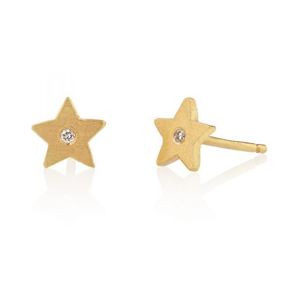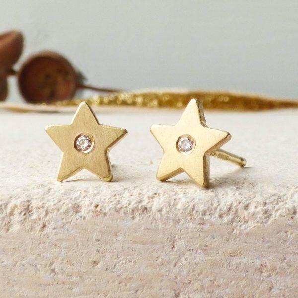 Made in 18k Fairtrade yellow, white or rose gold with white diamonds. Alternative gemstones such as blue sapphires, emeralds, pink sapphires, rubies and yellow sapphires are available.Dimensions: The stars are approx 7 mm with 1.2 mm thickness. The white diamonds are 1 mm.