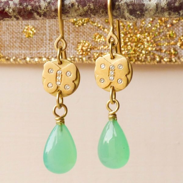 These darling ethical earrings are perfect for any occasion. They are part of the Animal Amulets Collection, which is inspired by the Ancient Egyptians who wore jewellery primarily as protection. The butterflies represent freedom, trust and transformation, whilst the chrysoprase activates abundance and creativity.