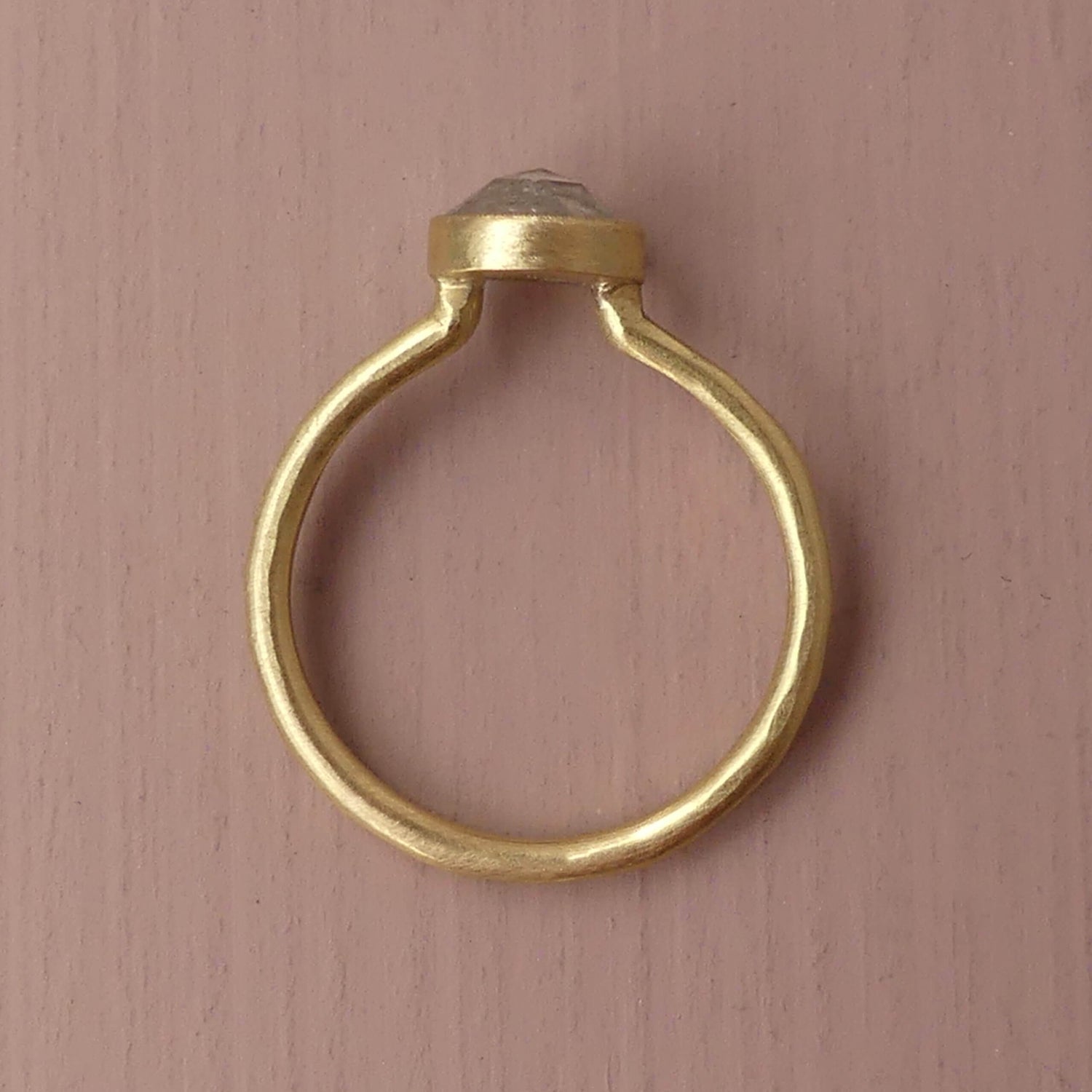 18k Fairtrade gold with 1ct rose-cut diamond.Dimensions: Band 2 mm wide x 1.5 mm deep hammered.