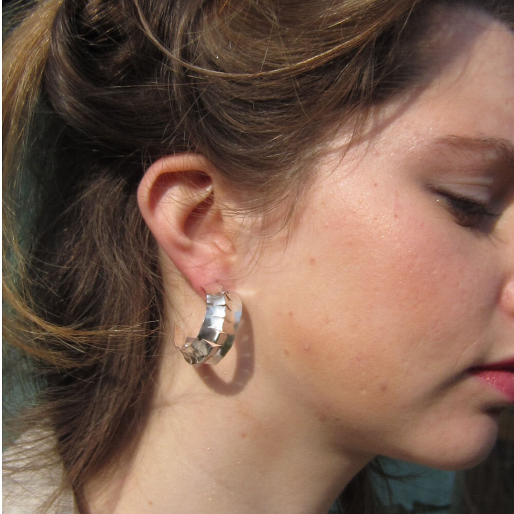 Easy to wear and fantastically light, the Mariachi hoops are hand forged in sterling silver.Inspired by paper lanterns, each pair is entirely crafted by hand by Catherine. Designed to provide hours of satisfaction and stylish elegance, and one-of-a-kind to celebrate the uniqueness in you.