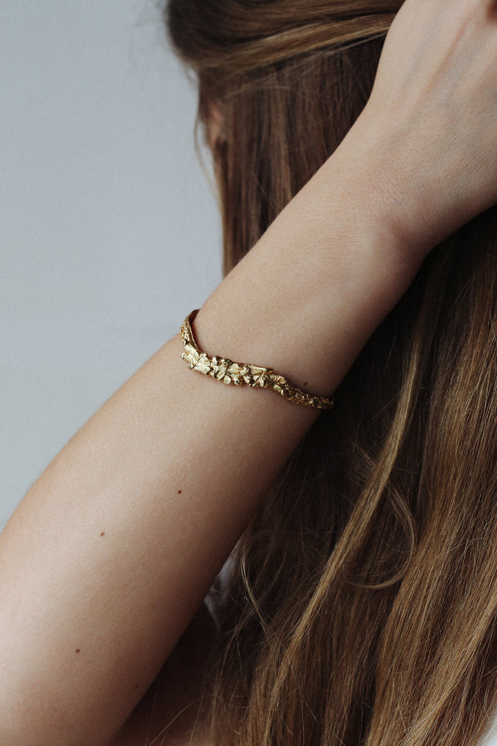 This cuff-style textured gold bangle from Dovile's Ocean collection is a real statement piece!