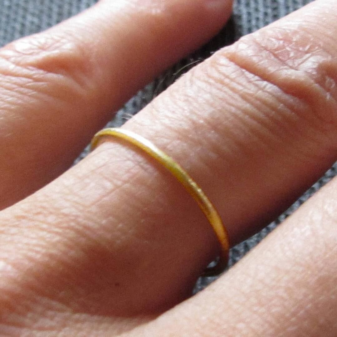 Made of 22k recycled gold, a cute and skinny handcrafted ring. The 22K yellow gold is a gorgeous rich yellow. This thin, simple and elegant fine gold ring is a slender 1 mm wide, making it ideal to wear in stacks.