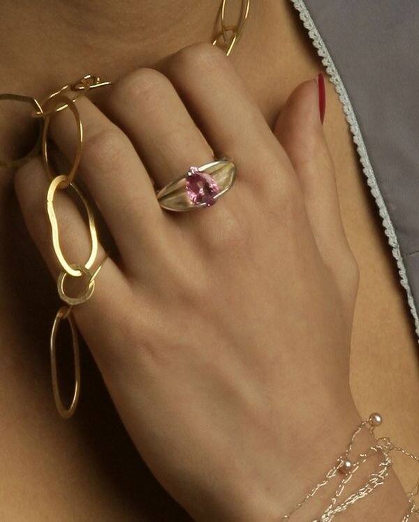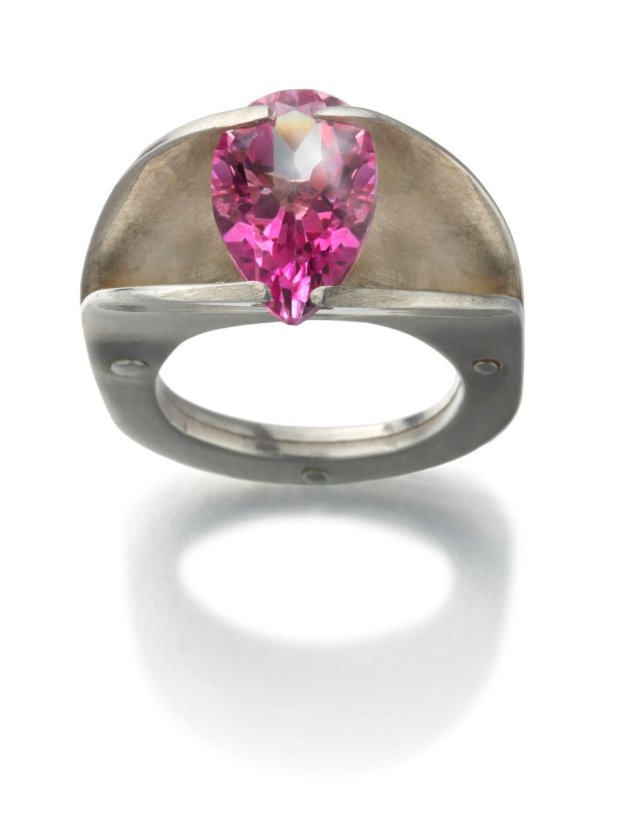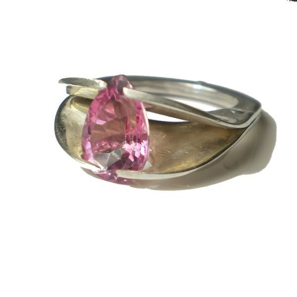 Sterling silver with a pink topaz.