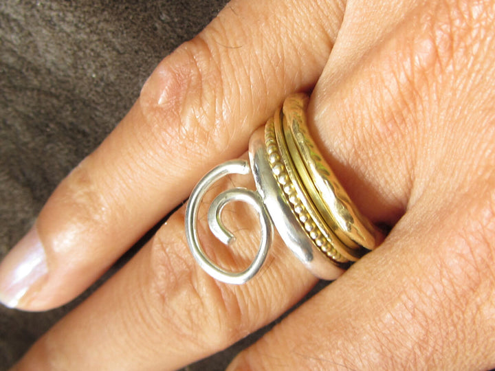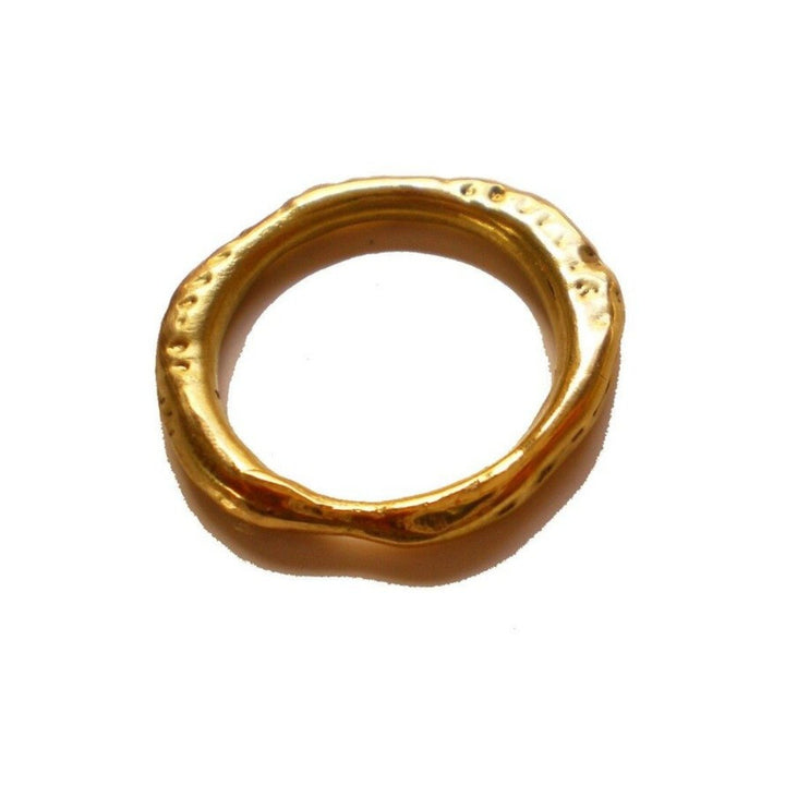 This jewel is handmade to look like liquid or molten gold. This handcrafted organic ring is made of 18k yellow gold and looks great on its own as well as combined with other bands.