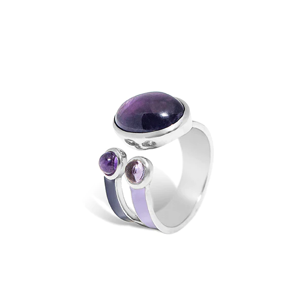 When looking into the history of the stripes, we can conclude that this has been a controversial, but also an incredibly popular pattern for men and women. So many artists, musicians, movie stars and others were seen wearing striped clothing. We are all in love with stripes, so why not wearing striped jewellery too? The Purple Striped Ring is in polished sterling silver and enamel, set with lilac and deep violet tourmaline stones and amethyst. Amethyst is a powerful stone enhancing wisdom.