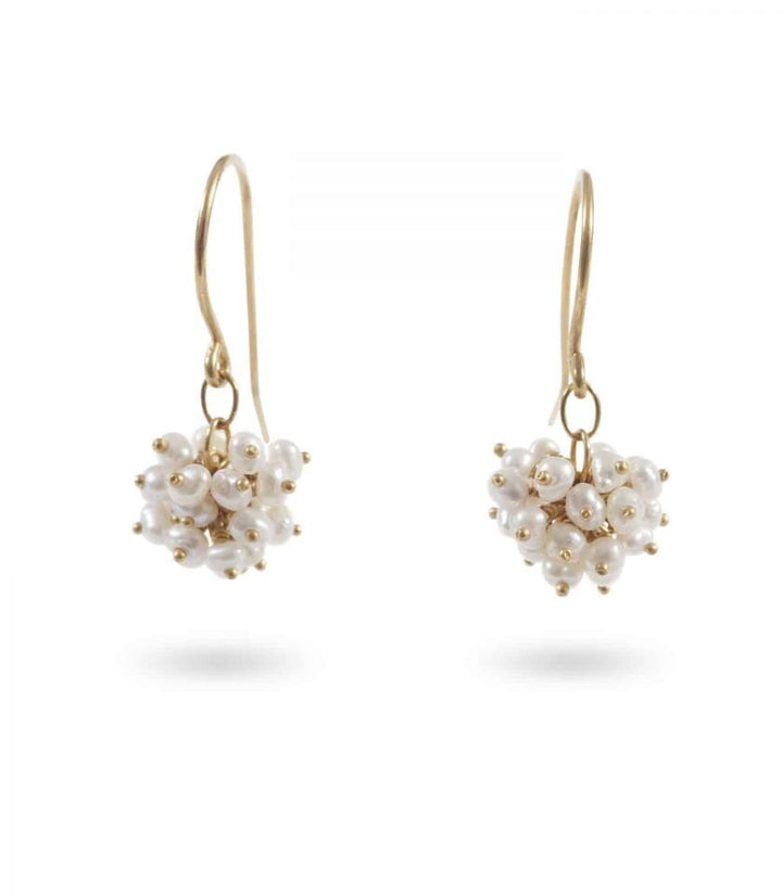 Delicate beaded cluster earrings with lustrous creamy-white pearls; choose from yellow-gold or rose-gold vermeil. Also available in silver or oxidised silver. These are so dainty, feminine and easy to wear. Their sweet pompom shape adds a feminine, sophisticated element to your everyday look, and they would also look wonderful on a bride. Pearls are the birthstone for June and the traditional 30th wedding anniversary gift.