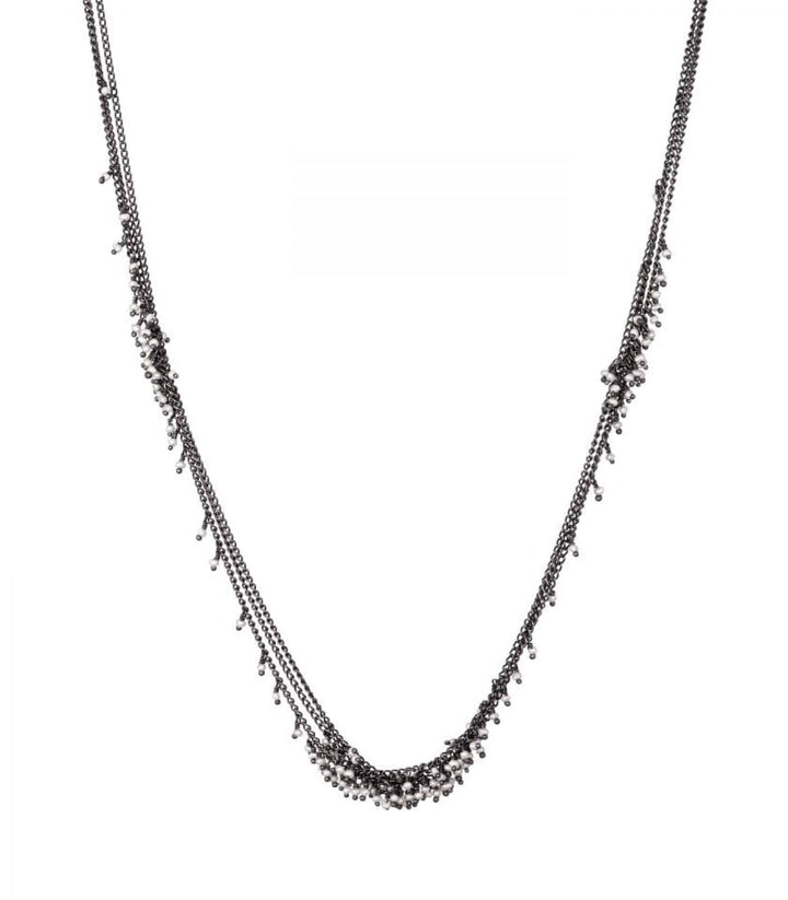 Oxidised sterling silver with freshwater pearls.Dimensions: Adjusts from 40cm to 48cm long. Approx. size of beads 1-1.5mm.