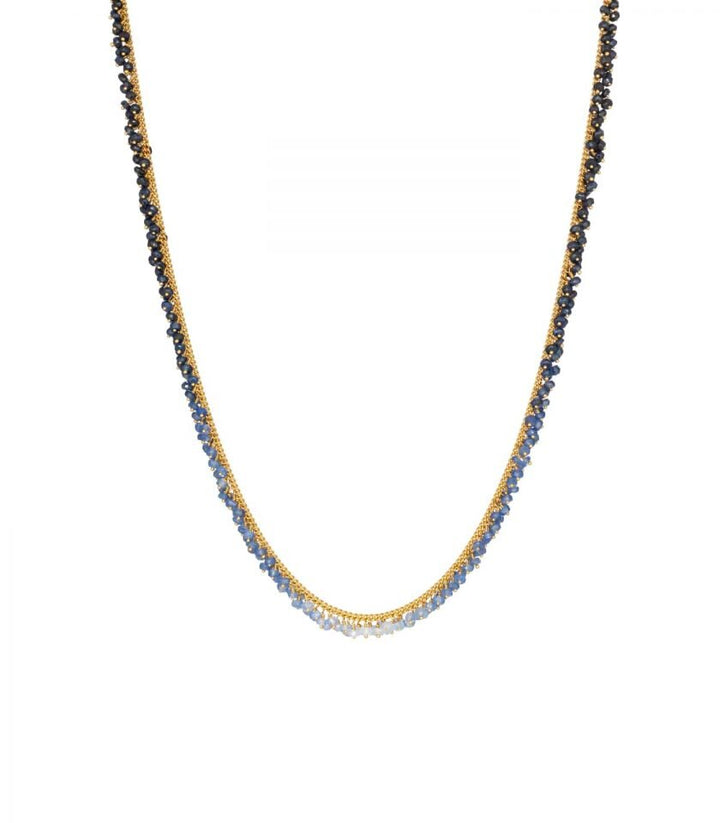 Yellow gold vermeil (sterling silver with a thick, durable layer of 22k gold plating) with sapphires.Dimensions: Adjusts from 40cm to 48cm long. Approx. size of beads 2mm.
