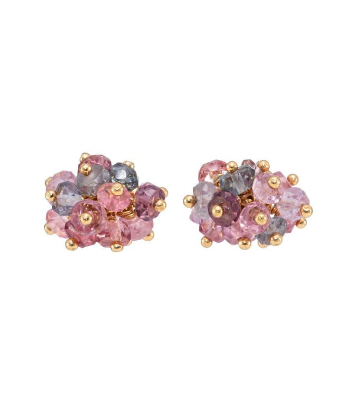 Yellow Gold Vermeil (sterling silver with a thick, durable layer of 22k gold plating) with pink, lilac, peach and blue spinel.Dimensions: 1cm diameter cluster.