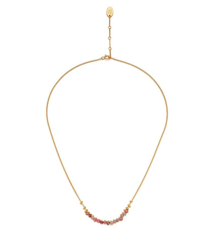 This dainty chain has pretty pastel spinel faceted beads pinned along it. Lilacs, pinks and blues blend beautifully for a subtle, dusty pastel mélange. Made from gold-plated silver curb chain, gold ball detailing gives it a considered twist. Perfect for layering with other chains, or wear it alone for a more minimal aesthetic.
