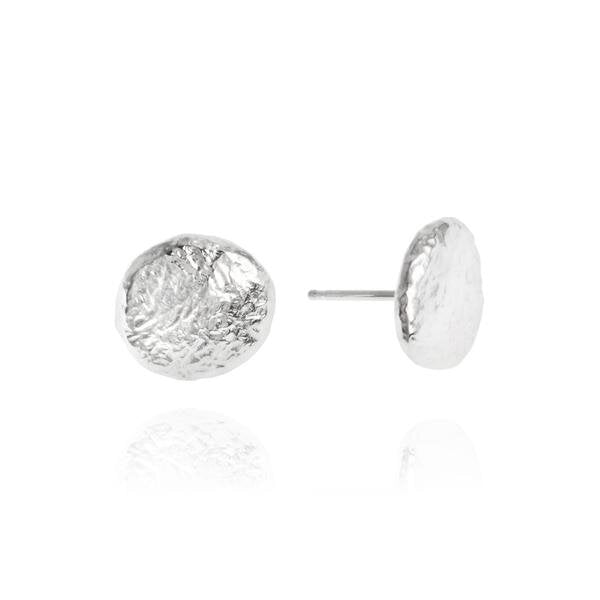 A pair of sterling silver studs that are sure to become staple in your collection in no time. From the Perdi range, they have been created from high-quality sterling silver and sit flush to the lobe - perfect for everyday wear. The simple disc design has been embellished with an organically-inspired texture born from its hammered creation and completely unique to every piece.