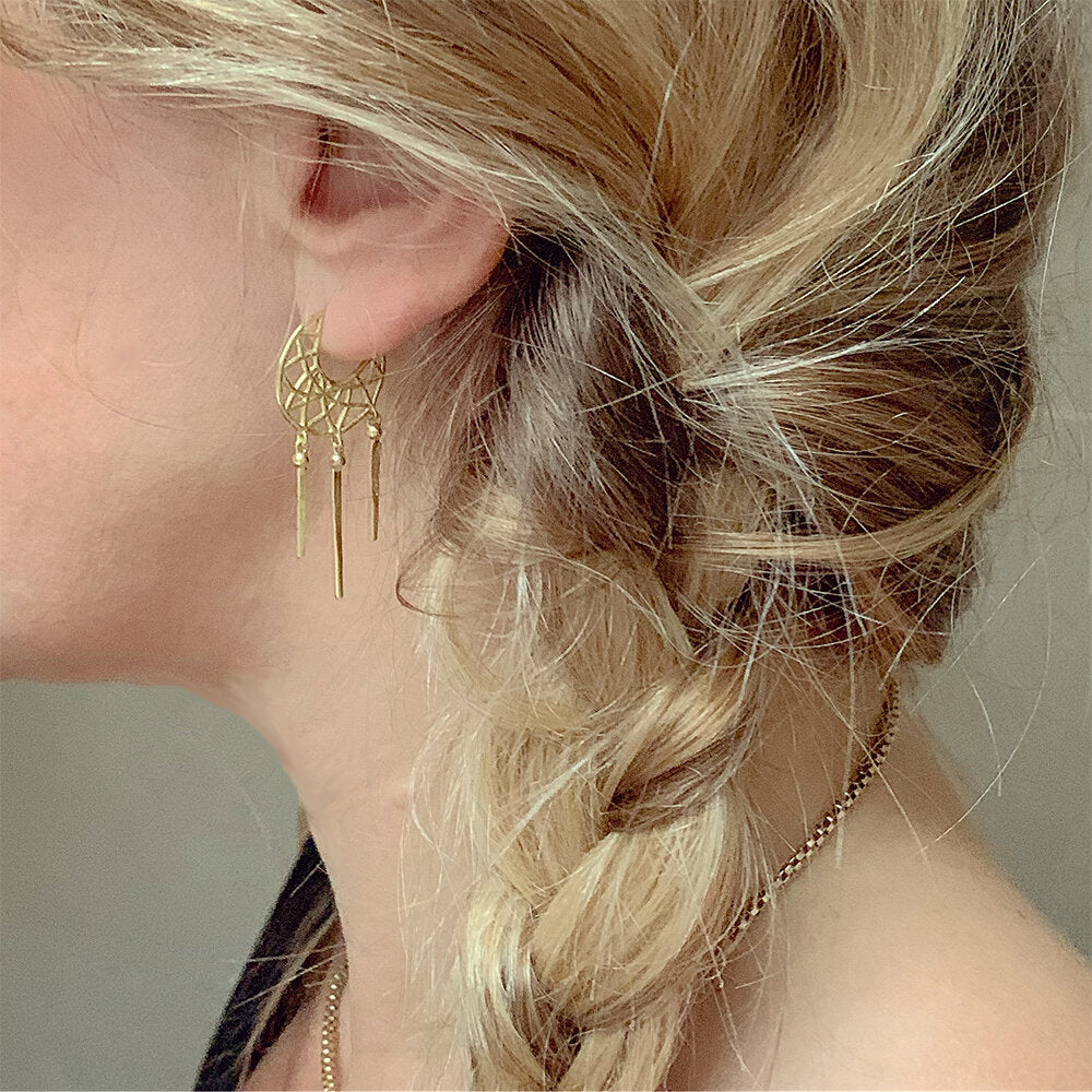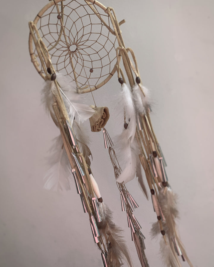 From Claire's Dreamcatcher collection. The dreamcatcher is a Native American protective talisman used to keep away nightmares and bad dreams; they get caught in the web and destroyed in the morning sunlight, while the good dreams filter gently through.