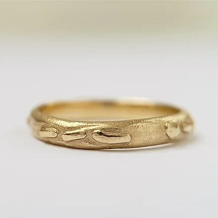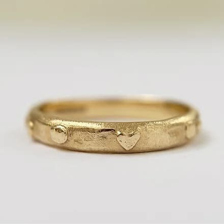 From Claire's new Bridal collection. A gold band with hidden meaning; AMORE spelled out in morse code and punctuated with a heart. Bespoke options: decide on your own special meaning with a name, date, place etc. The ring can also be made any width and type of gold (price will vary).