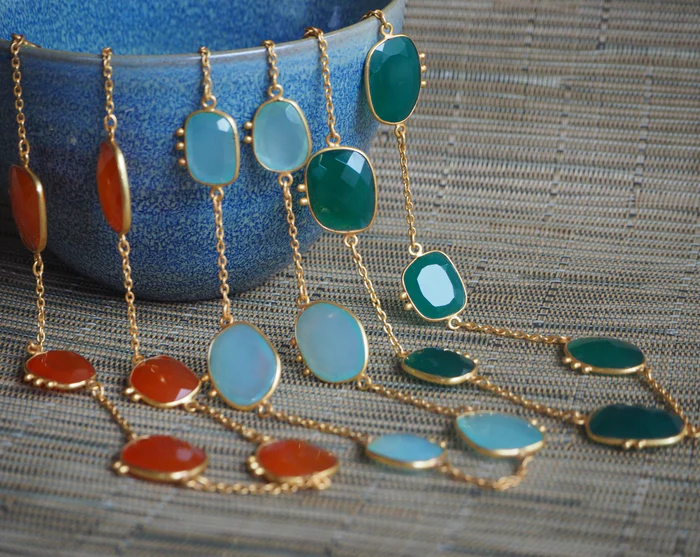 Combining a contemporary design with the Amazonia Collection's signature organic and earthy feel, this striking necklace is the perfect choice for everyday. A succession of ethically sourced facet-cut red onyx gemstones set on an elegant, handmade gold-plated sterling silver chain.