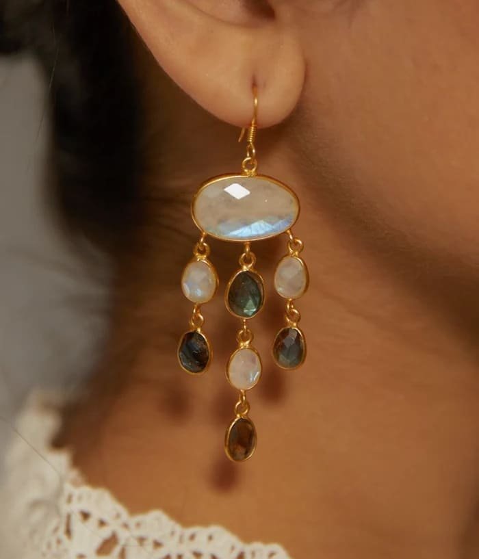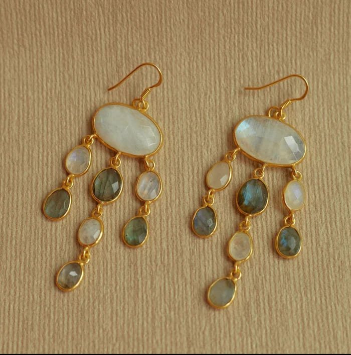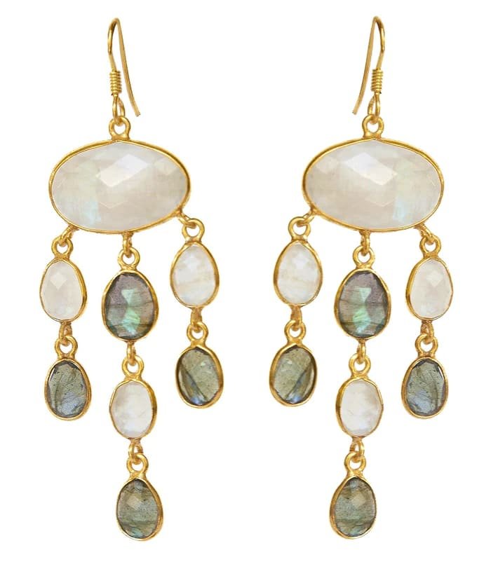 18k gold plated sterling silver with moonstone and sandy labradorite.Dimensions: Length 5.5cm.