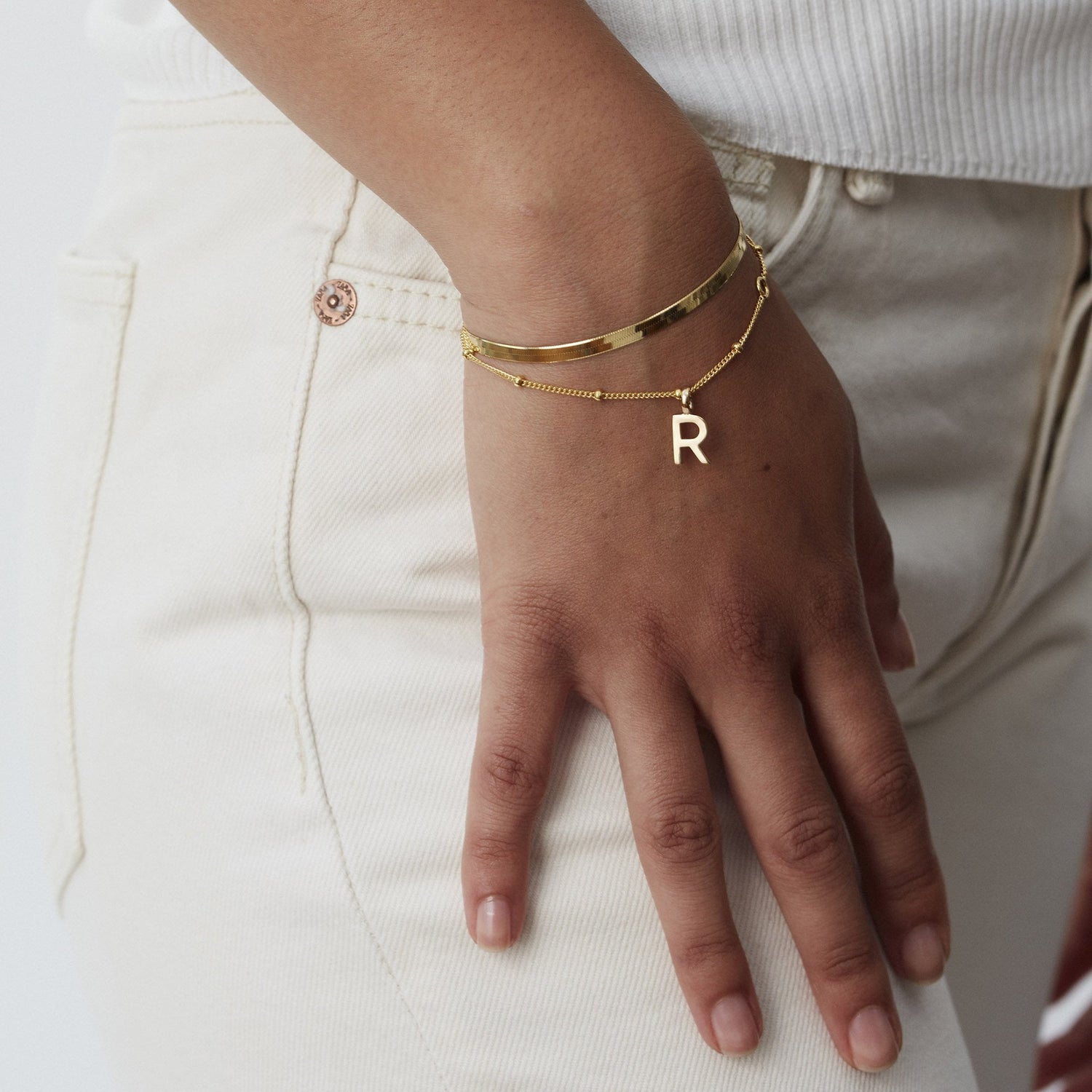 Handcrafted in 18-karat gold vermeil. Features a bead chain and customizable letter charm. Adjustable chain length for a perfect fit.