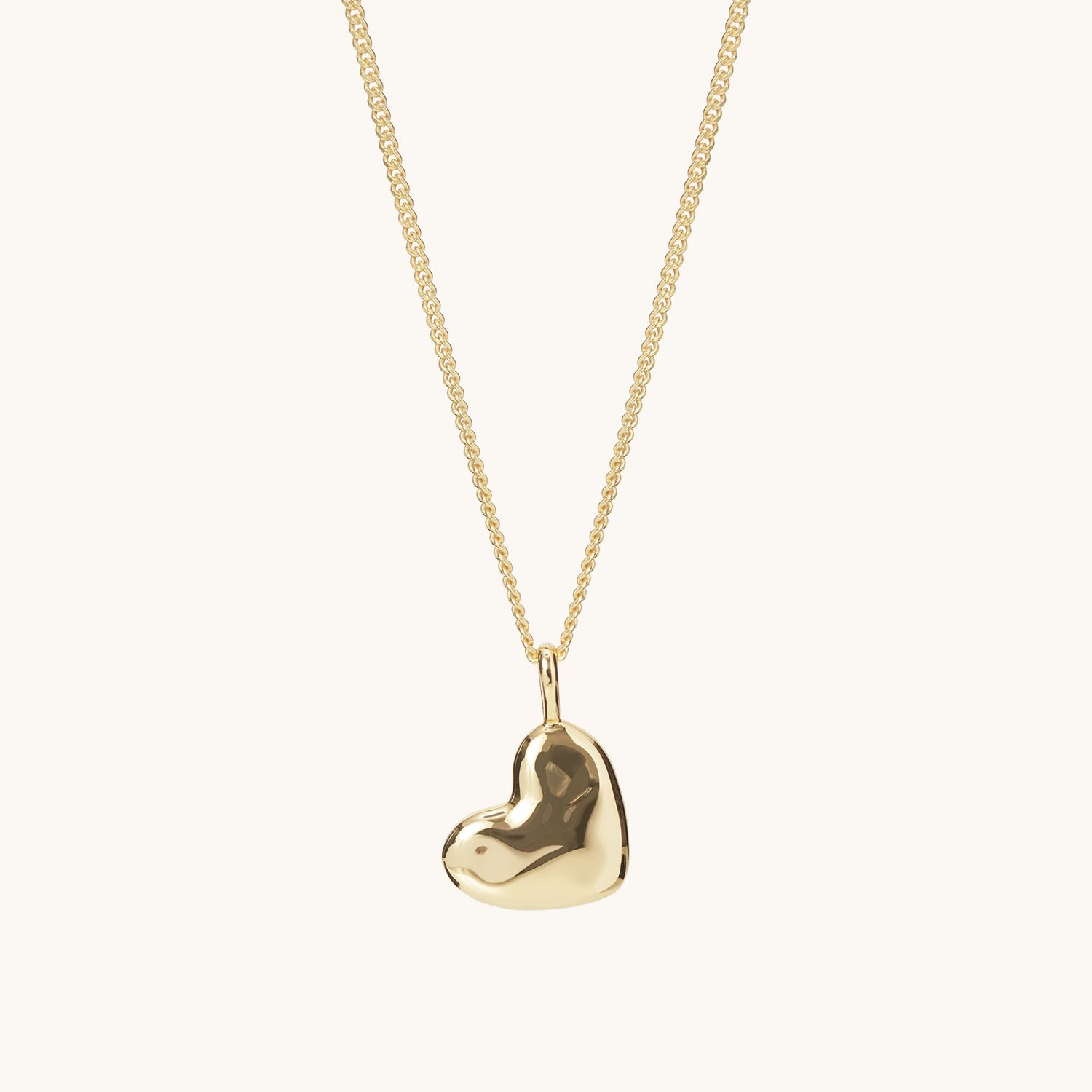 Crafted in 18-karat gold vermeil. Includes a heart-shaped pendant with an organic texture on a 16-inch curb chain, making it ideal for daily wear.