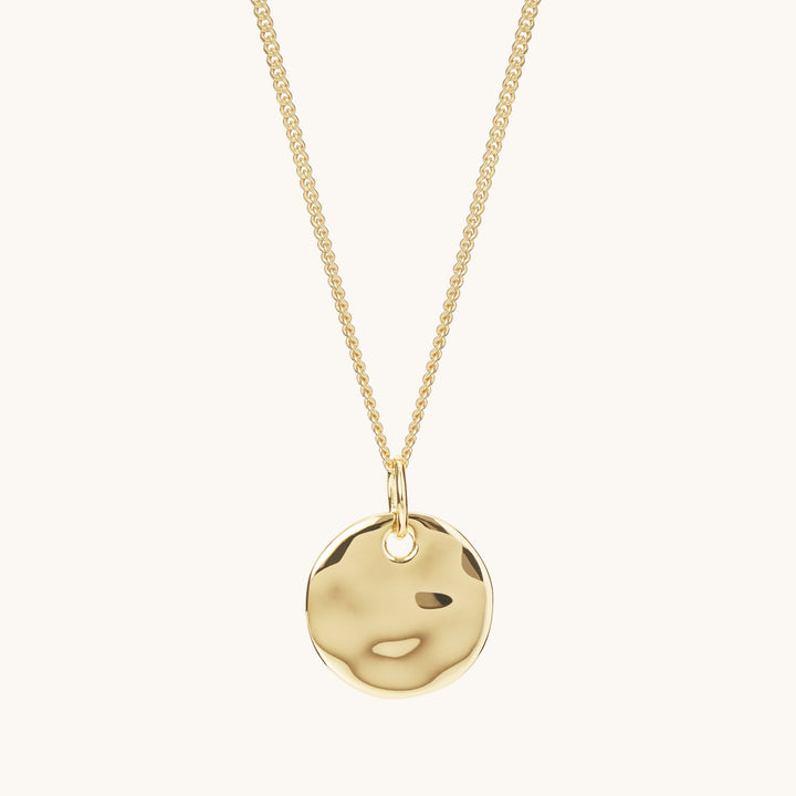 Handcrafted in 18-karat gold vermeil. Features a ripple disc pendant on a 16-inch curb chain. Made for durability and enduring charm.