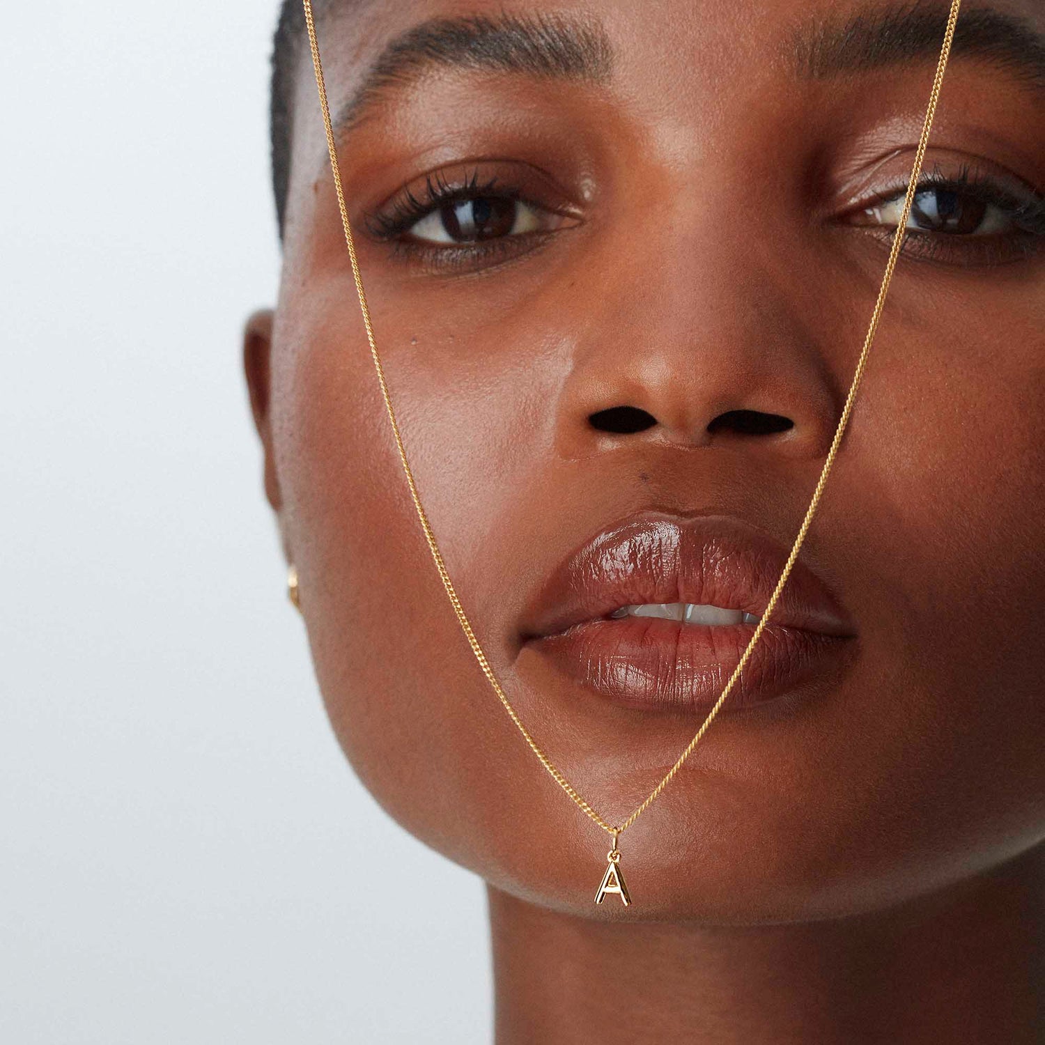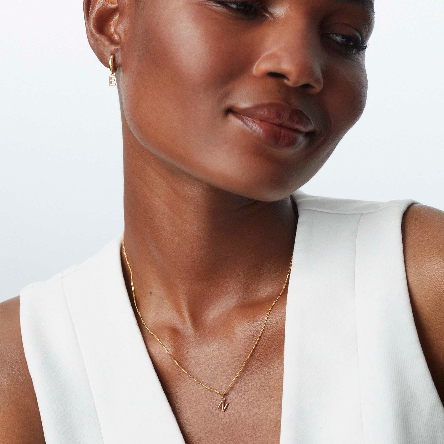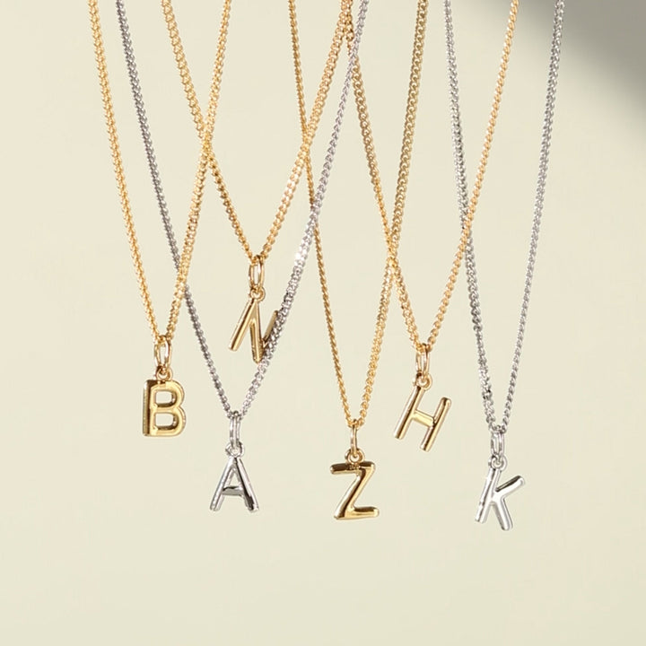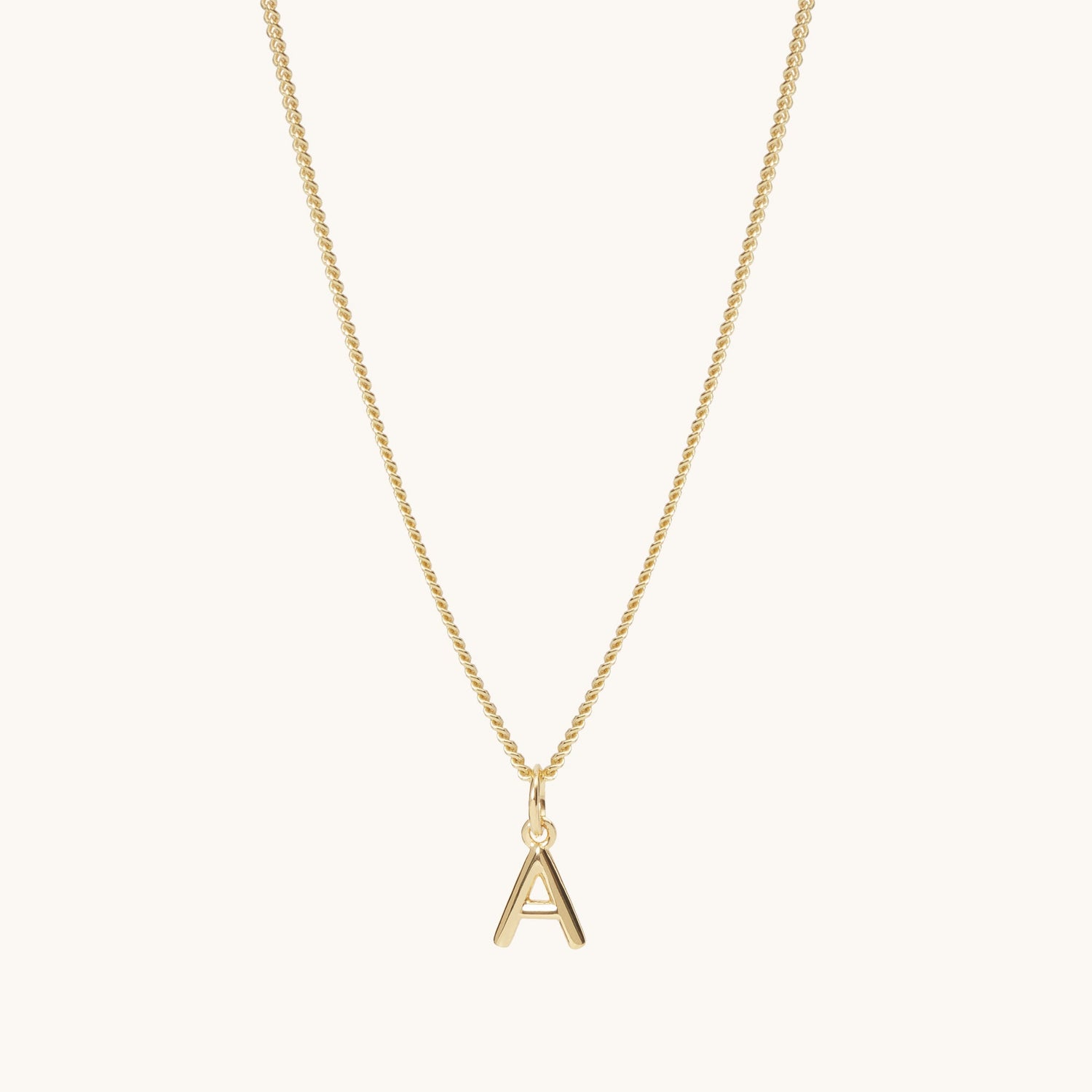 Handcrafted in 18-karat gold vermeil. Features a tiny letter pendant on a 16-inch curb chain.