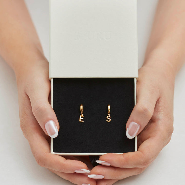 These Love Letter Hoops by Muru Jewellery are the perfect addition to your earring collection, offering a personalized touch through the letter charm design.