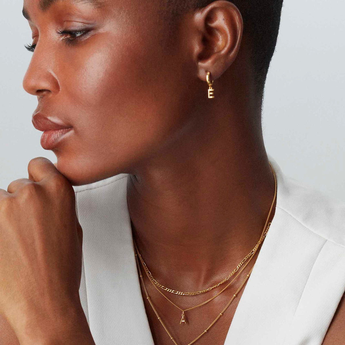 Crafted in 18-karat gold vermeil. Includes letter huggie hoop earrings with a secure closure for comfort and style.