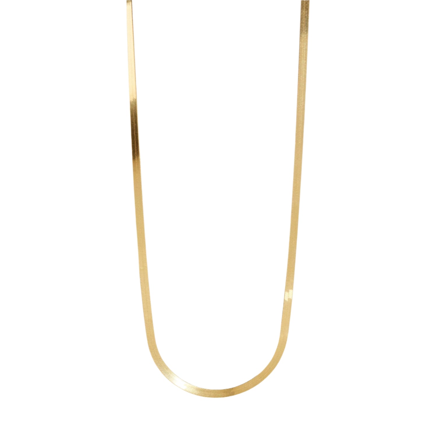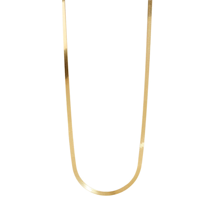 This Flat Snake Chain Necklace by Muru Jewellery offers timeless elegance. The high-shine herringbone design adds sophistication to any outfit, making it the perfect piece for both everyday wear and special occasions.