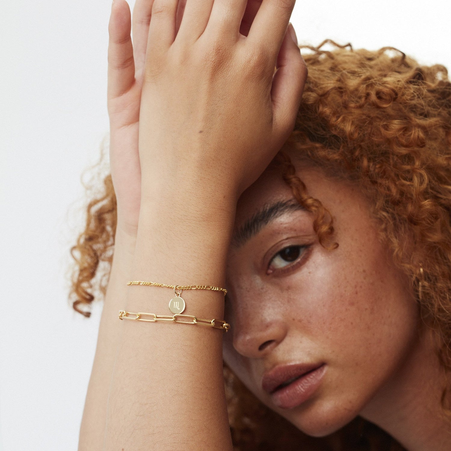 This Zodiac Sign Figaro Chain Bracelet by Muru Jewellery is a timeless addition to your jewelry collection. With the Capricorn zodiac sign, it offers a personal touch to your everyday bracelet stack.