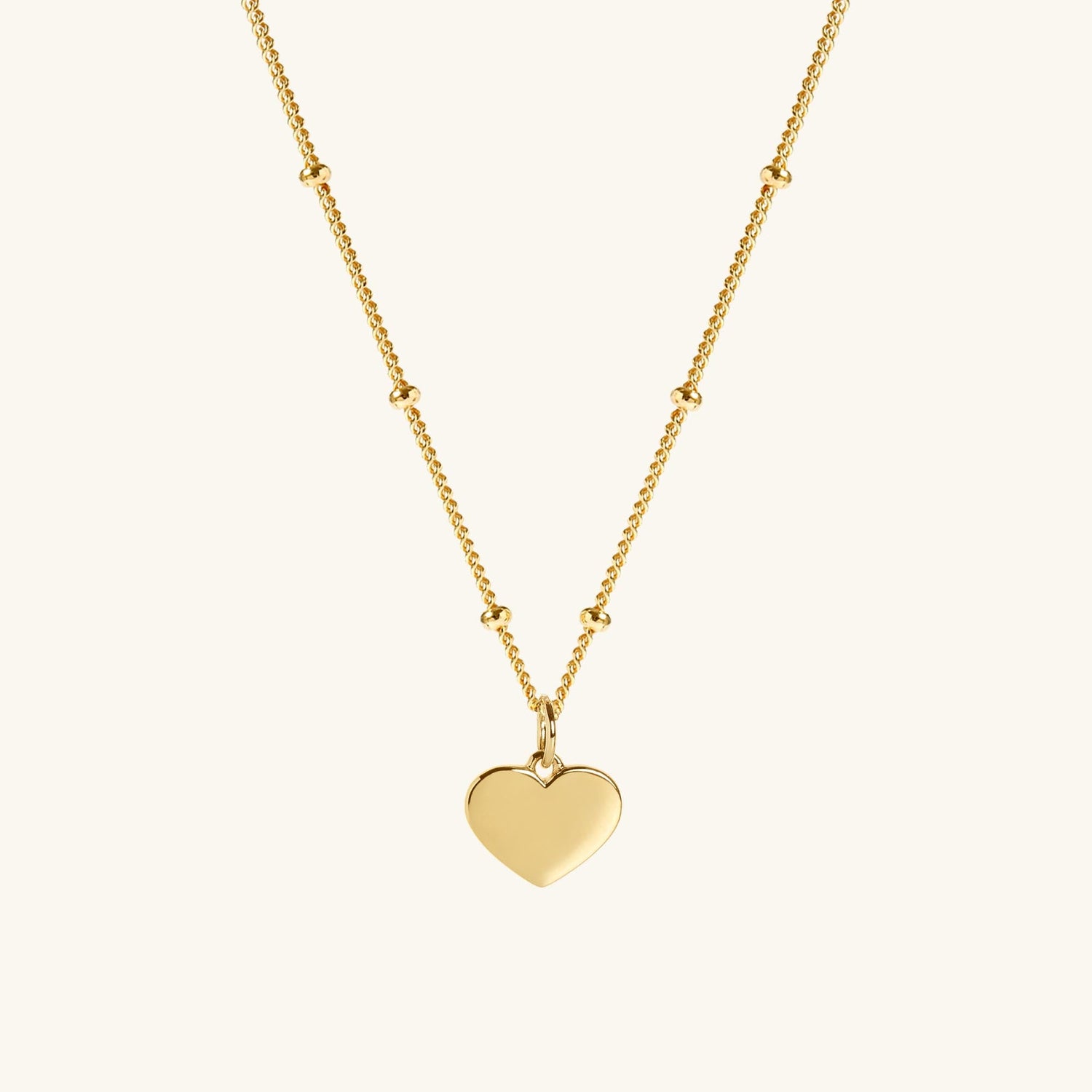 This Gold Heart Necklace with Bead Chain by Muru Jewellery is the perfect symbol of love and affection. Crafted in gold vermeil, it includes the option to engrave an initial, making it a highly personal and meaningful piece.
