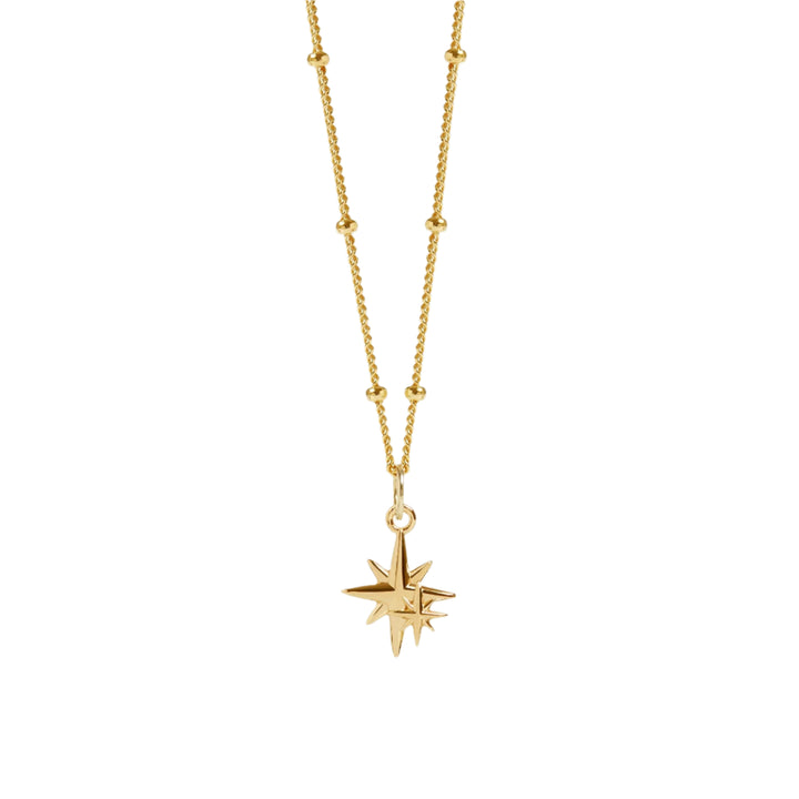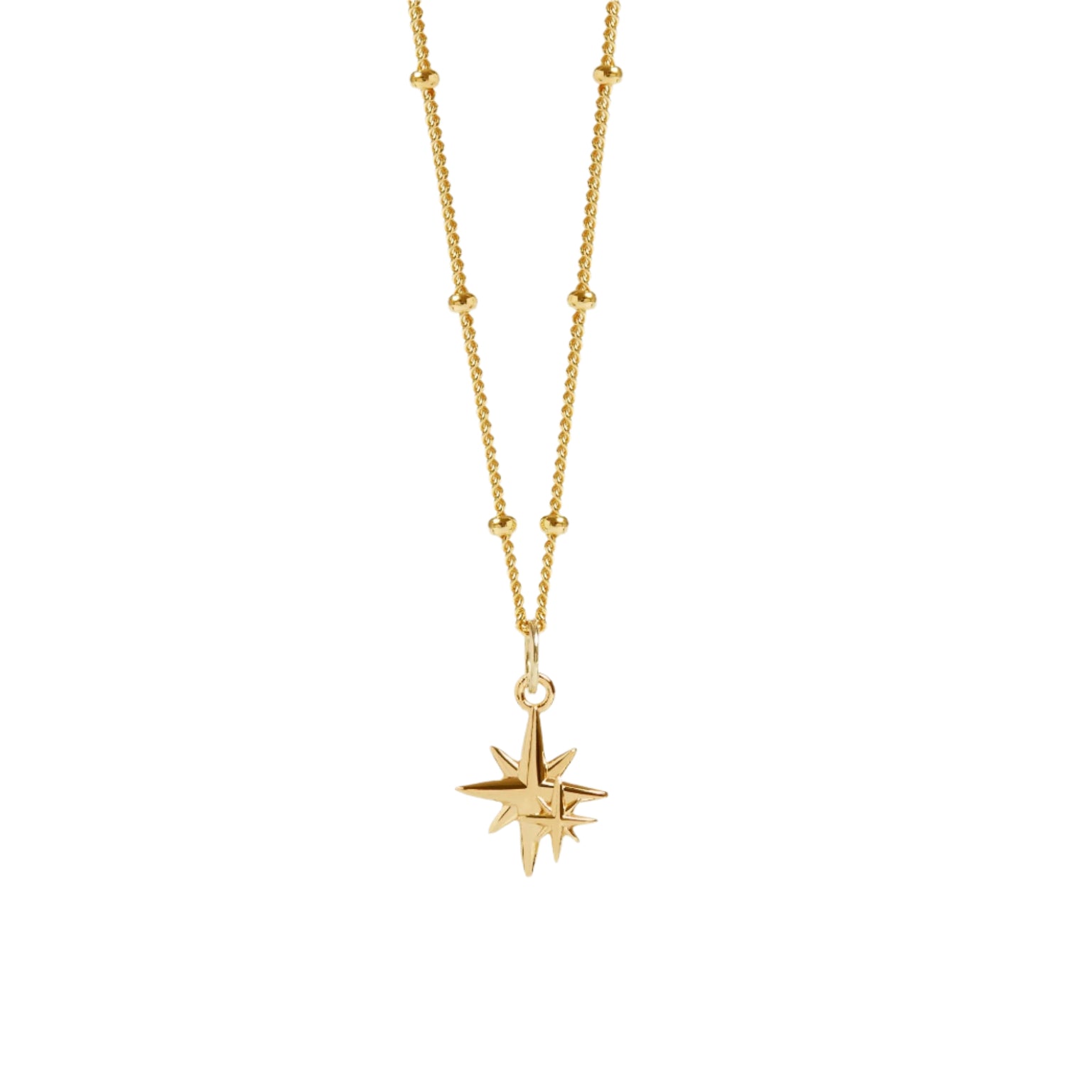 Handcrafted in 18-karat gold vermeil. Features two star-shaped pendants on a 16-inch bead chain, symbolizing the love between mother and child.
