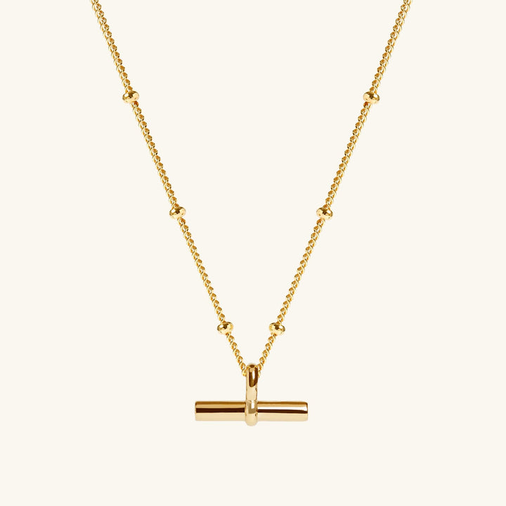 T-Bar Necklace Gold With Bead Chain
