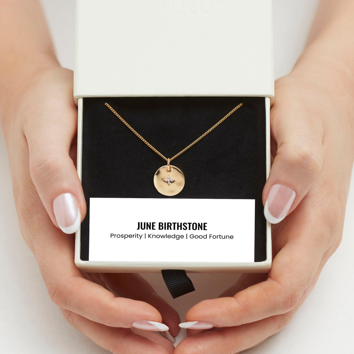 These June Birthstone Necklaces by Muru Jewellery add a delicate charm to your collection. Featuring the pearl, a timeless symbol of purity and wisdom, this necklace is both elegant and sentimental, making it ideal for daily wear or special occasions.