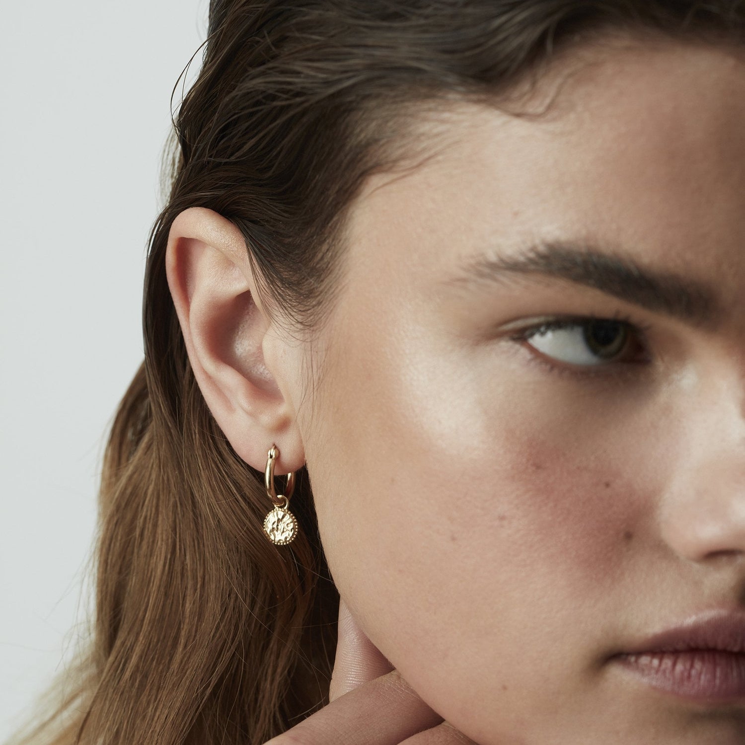 Handcrafted in 18ct gold vermeil with a polished finish. Features a secure hoop design.
