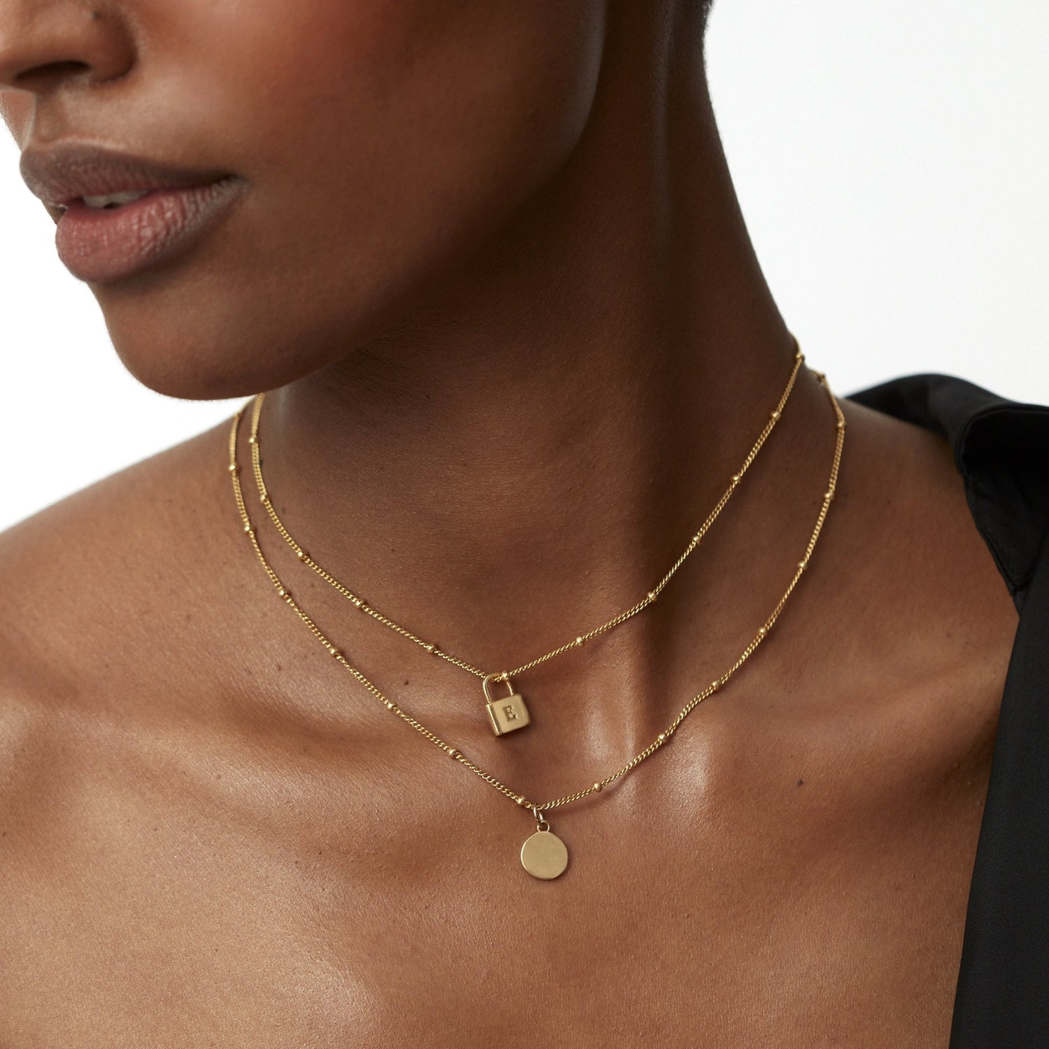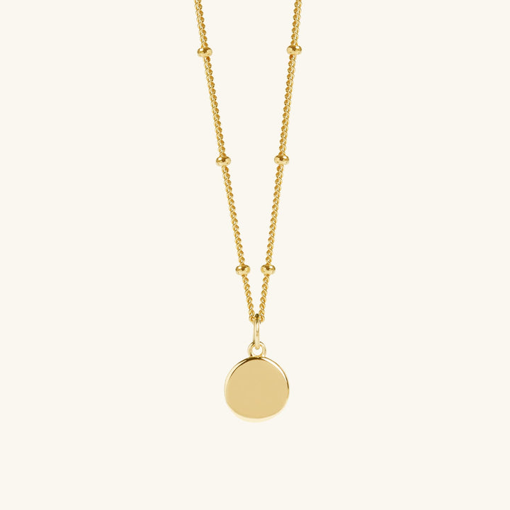 This Mini Disc Necklace With Bead Chain by Muru Jewellery is a delicate and refined piece. Featuring a disc pendant on a beaded chain, it effortlessly complements any outfit with understated elegance.