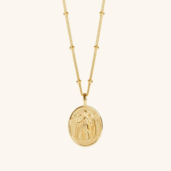 This Athena Coin Necklace With Bead Chain by Muru Jewellery celebrates female empowerment. Featuring the Greek goddess Athena, it is a meaningful tribute to strength and wisdom, perfect for adding a touch of history and symbolism to your style.