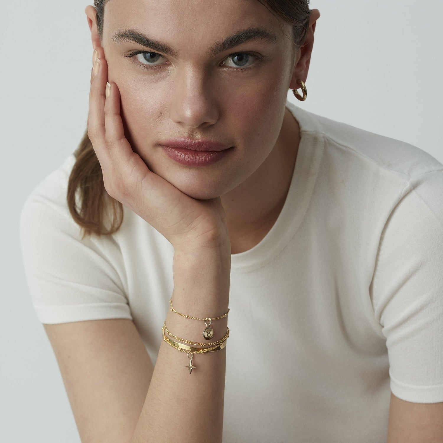 This Star Bead Bracelet Gold by Muru Jewellery symbolizes hope and guidance. The delicate star charm is a thoughtful gift for encouraging loved ones to never lose hope.