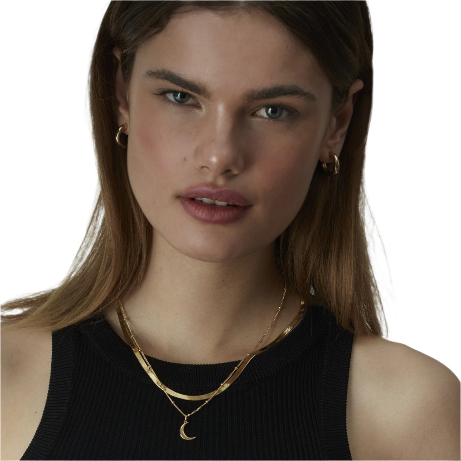 This Moon Pendant Bead Chain Gold by Muru Jewellery features a mini crescent moon, a symbol of empowerment and intuition. Its elegant bead chain design ensures it will be loved and worn for years.