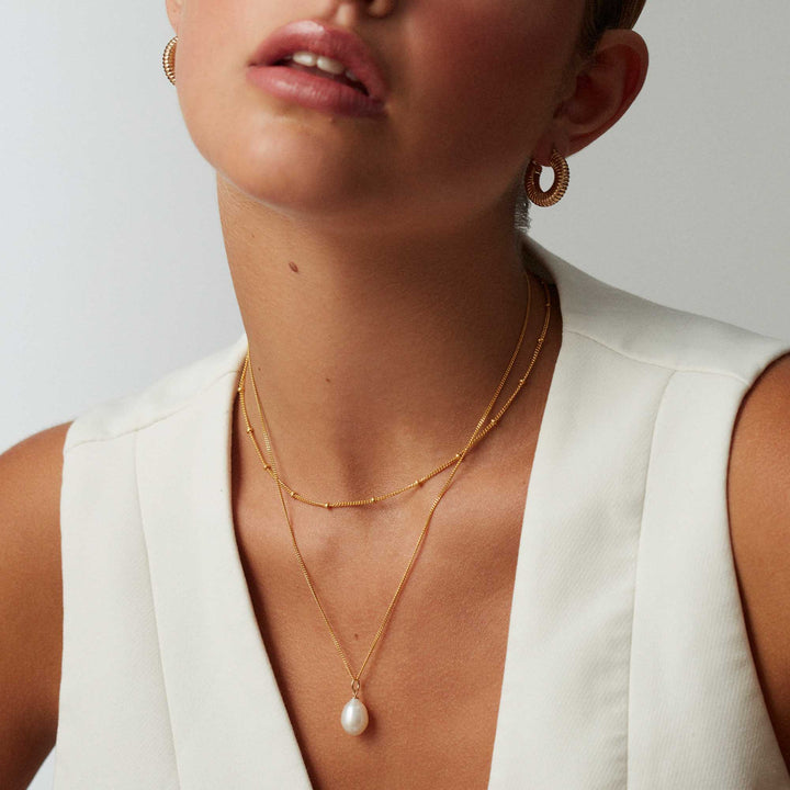 This Freshwater Pearl Necklace Gold by Muru Jewellery is a versatile classic. Its timeless pearl design is effortlessly chic, making it ideal for layering or wearing solo.