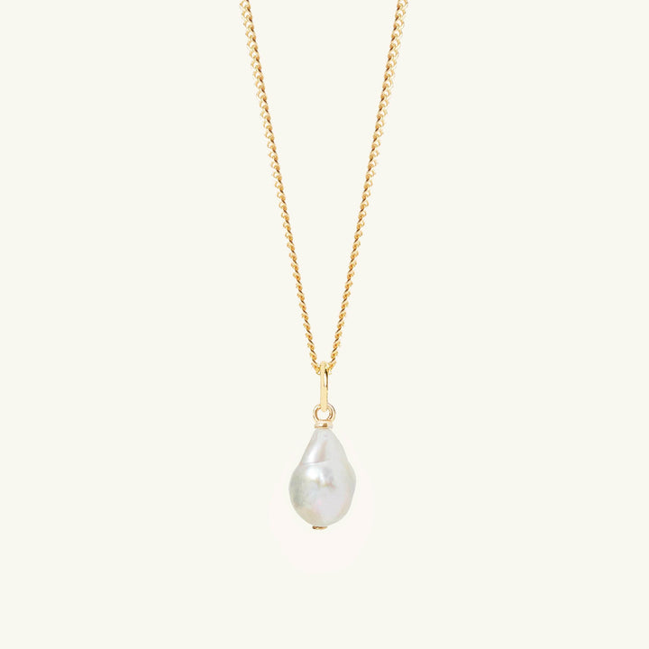 Handcrafted in solid sterling silver with 18ct gold vermeil. Includes a 16'' curb chain with a freshwater pearl.