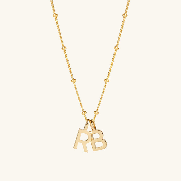 This Double Letter Necklace With Bead Chain Gold by Muru Jewellery is a customizable piece perfect for expressing individuality. Featuring two letter charms, it’s a meaningful gift or a stylish personal treasure.