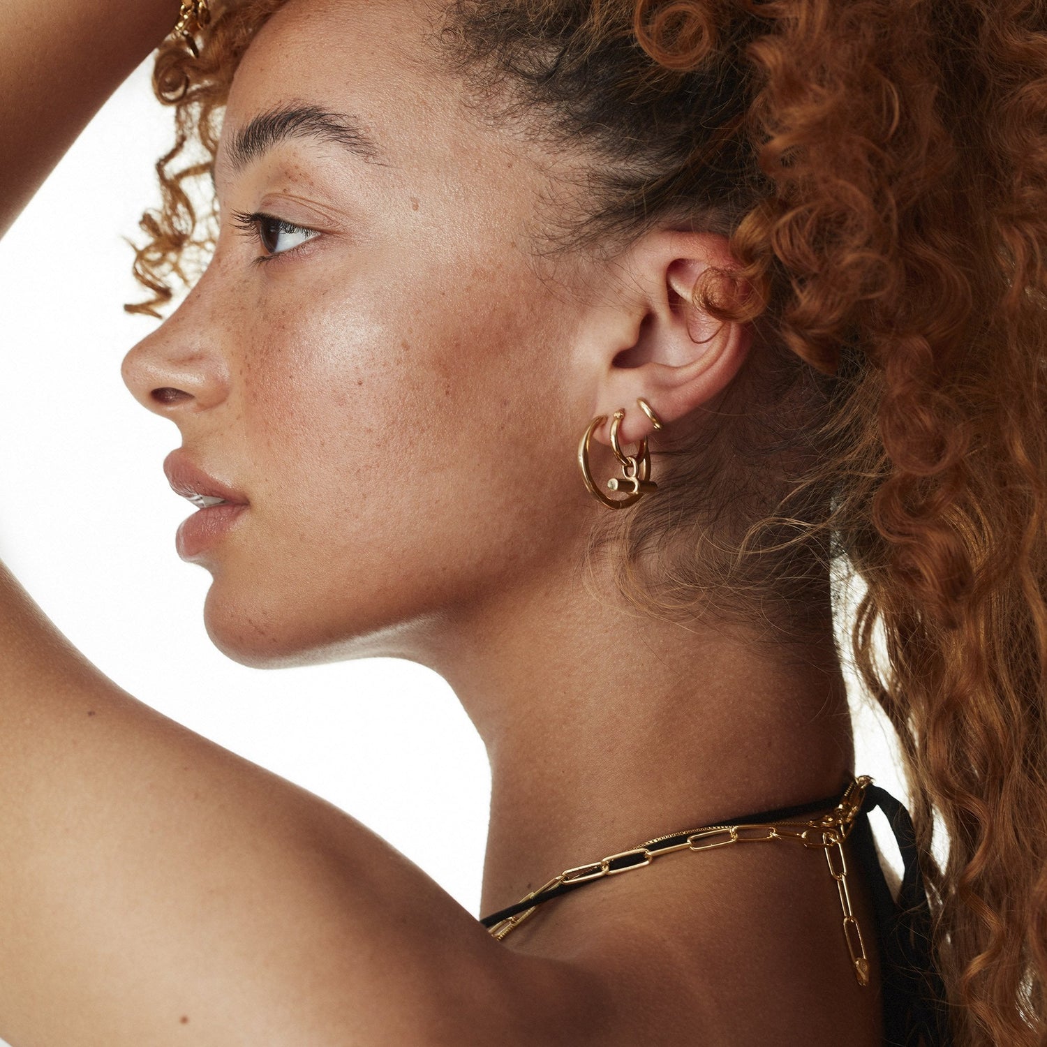 Handcrafted in solid sterling silver with 18ct gold vermeil. Features a paperclip chain for a modern and refined look.