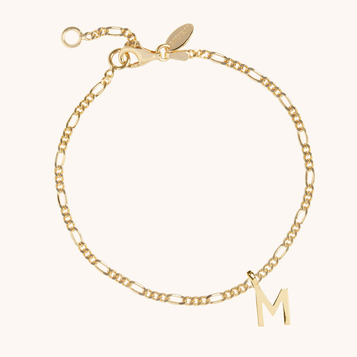 This Letter Figaro Bracelet Gold by Muru Jewellery combines elegance with a personal touch. Featuring a customizable letter charm, it adds meaningful detail to any outfit, making it a thoughtful gift or personal keepsake.