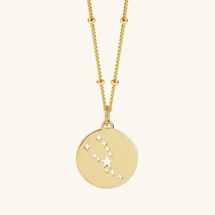 This Taurus Star Sign Necklace Gold by Muru Jewellery celebrates the grounded and steadfast Taurus star sign. Its elegant design makes it a meaningful talisman for inner balance and peace.