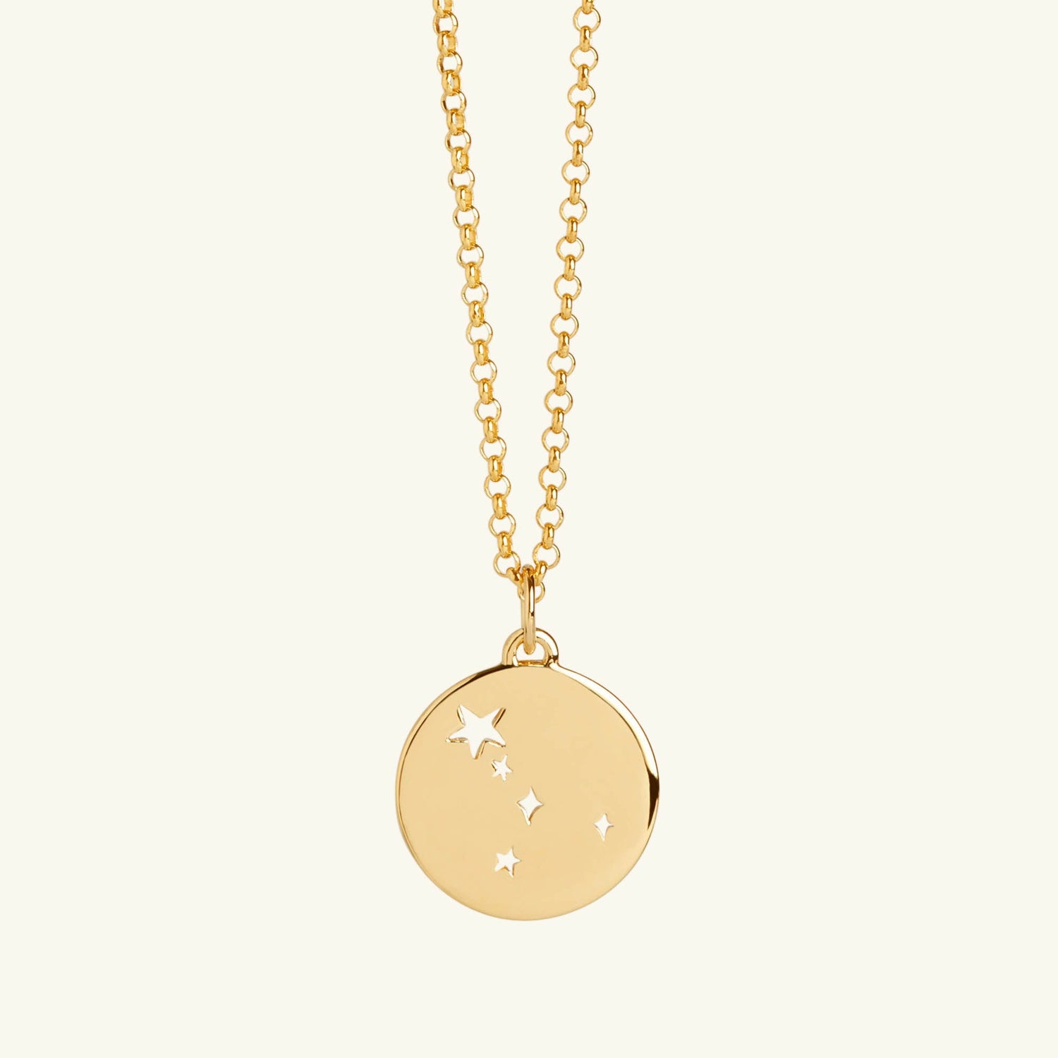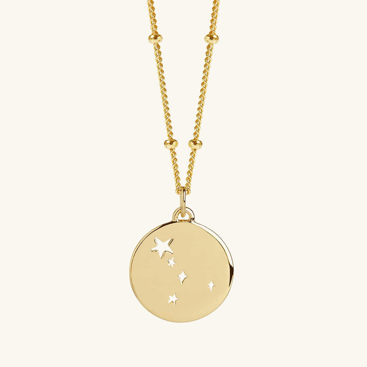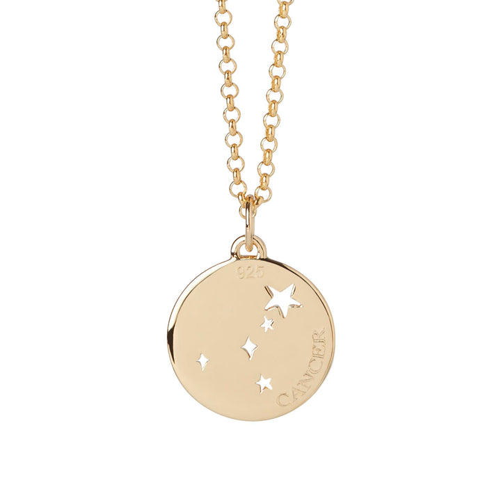 This Cancer Star Sign Necklace Gold by Muru Jewellery represents the nurturing and intuitive Cancer star sign. Its unique star pattern and delicate design make it a sentimental and luxurious accessory.