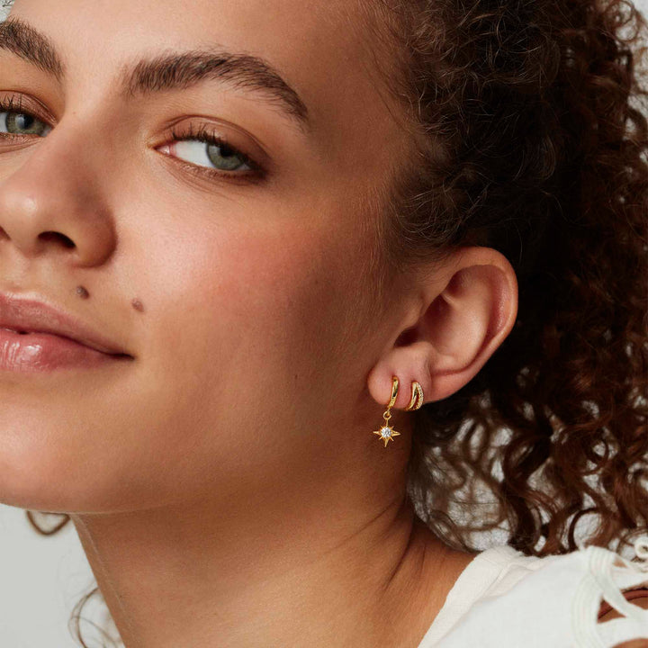 These Crystal Star Hoops Gold by Muru Jewellery embrace celestial charm with their star-inspired design. A symbol of hope, these hoops add a subtle shine and sentimental touch to any collection.
